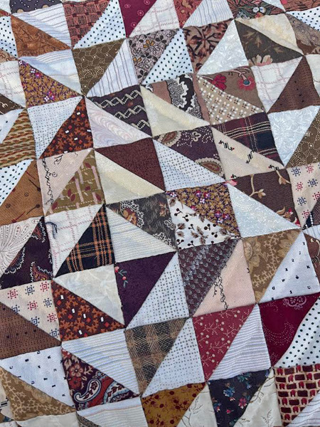 Dans l’univers infini des quilts américains du XIXe siècle j’ai toujours eu une préférence marquée pour les ouvrages simples utilisant les tissus de la vie quotidienne de l’époque