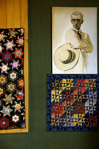 …et après des recherches éperdues de quelques bénévoles pour me procurer quatre clous et un marteau, un pan de mur s’est prêté de bonne grâce à recevoir deux des plus grands quilts