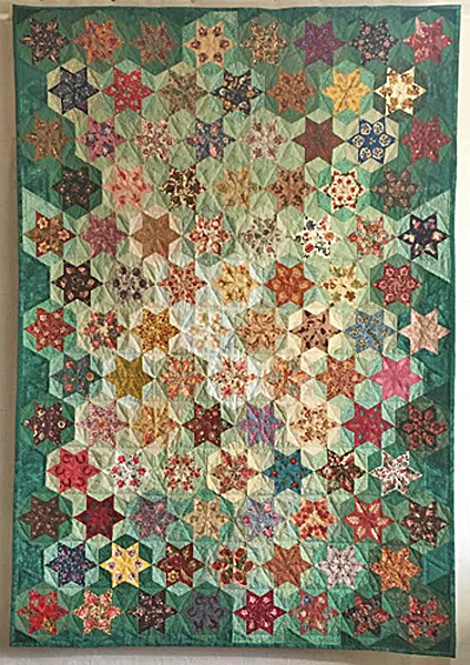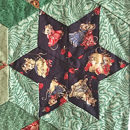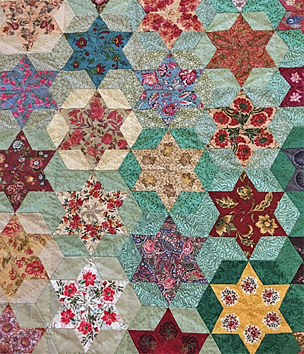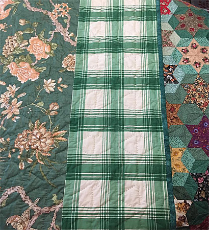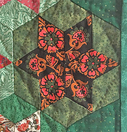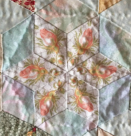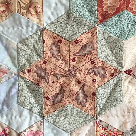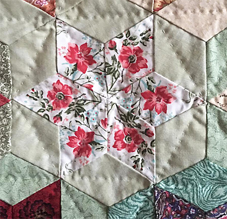 Le quilting simple souligne la diagonale de chaque losange avec des couleurs de fils respectant chaque teinte des étoiles