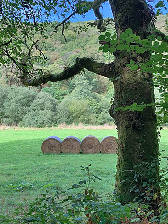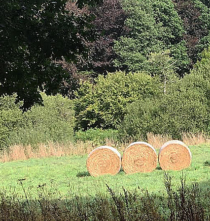 En été, les meules de foin apportent un jaune d’or parfait pour faire vibrer la nature environnante