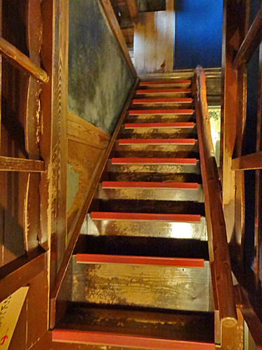 Les escaliers menant aux cuisines sont toujours, dans les vieux bâtiments au Japon, extrêmement périlleux à descendre !