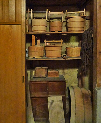 La maison bénéficiait d’un puits en témoignent la collection de seaux en bois entreposés dans la cuisine