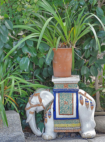 En marchant sur la route de Fushimi,mon attention fut attiré de prime abord par un éléphant insolite à l’entrée d’un tout petit jardin que je pensai privé !