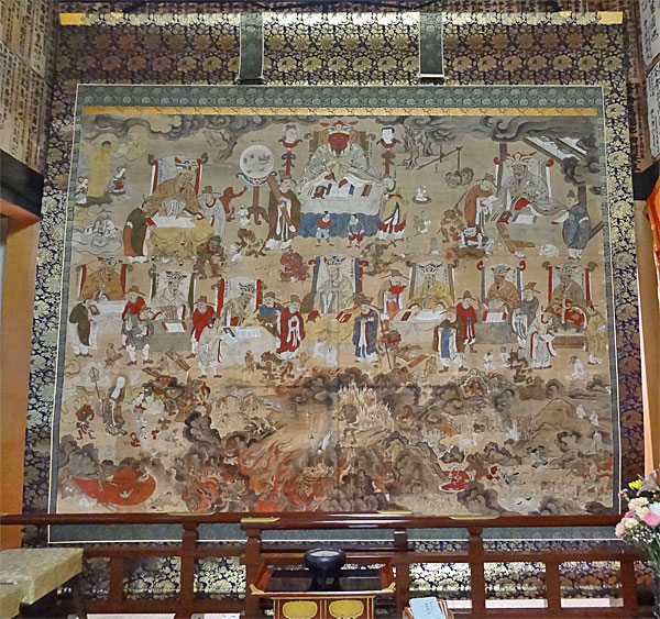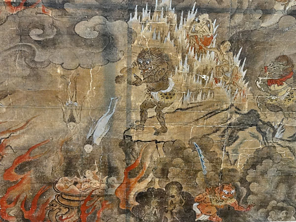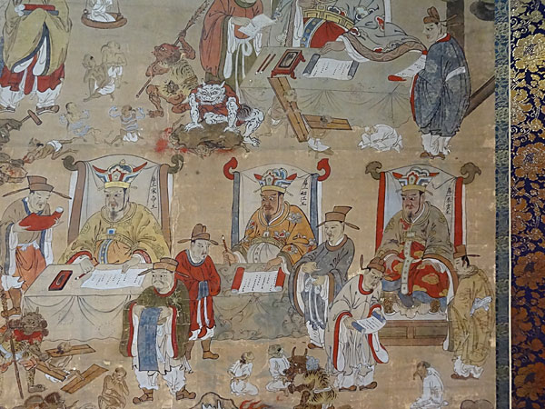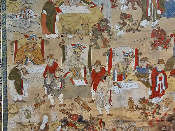 Les images les plus surprenantes venaient d’un panneau peint sur soie narrant en détails les scènes dramatiques d’un jugement après le trépas