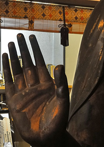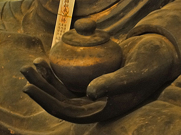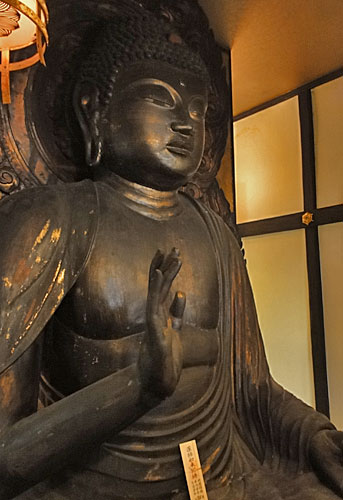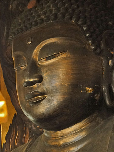 Cette effigie d’Amida butsu, en bois auparavant recouvert de laque d’or, perdit de son éclat au fil des siècles