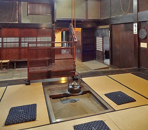 Dans les vieilles maisons traditionnelles, qui n’existent presque plus de nos jours, l’Irori, le foyer, était le point central de la grande pièce à vivre dans laquelle se réunissaient tous les membres de la famille
