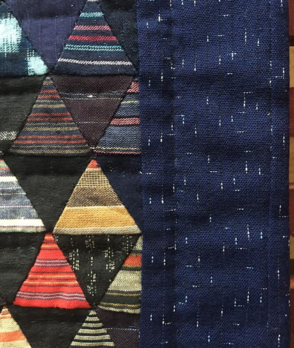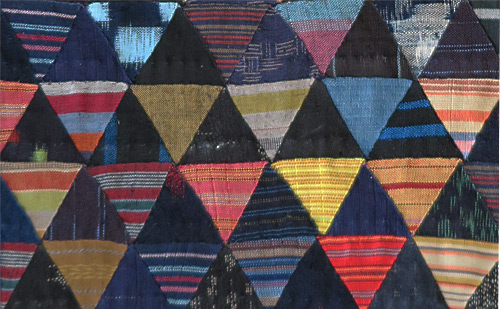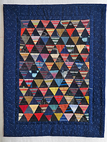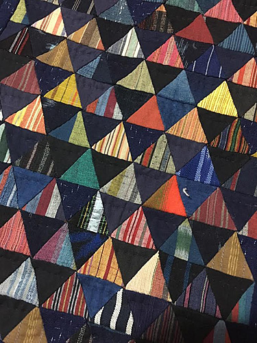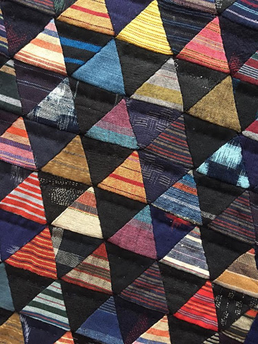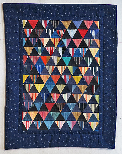 Les triangles sombres se partagent entre différentes nuances de bleu et de noir, leur dénominateur commun étant la teinture à l’indigo