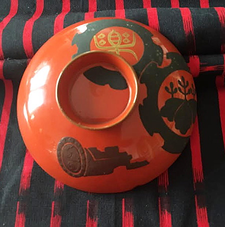 Ces coupelles assez peu profondes en bois laqué sont toujours utilisées pendant les cérémonies de mariage dans le culte shintô ( Quoique les modernes sont maintenant en plastique laqué ! )